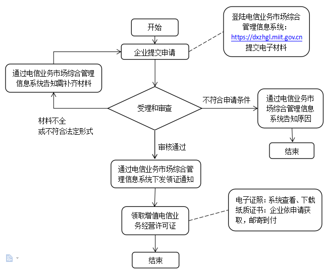 1. 电子证照。电子证照与纸质证照具有同等法律效力,均可作为企业从事增值电信业务经营活动的合法凭证。许可申请审批通过后,企业可登录“电信业务市场综合管理信息系统”查看和下载电子证照,具体操作流程可查看电信业务市场综合管理信息系统—申请指南—《增值电信业务经营许可电子证照下载使用手册》。