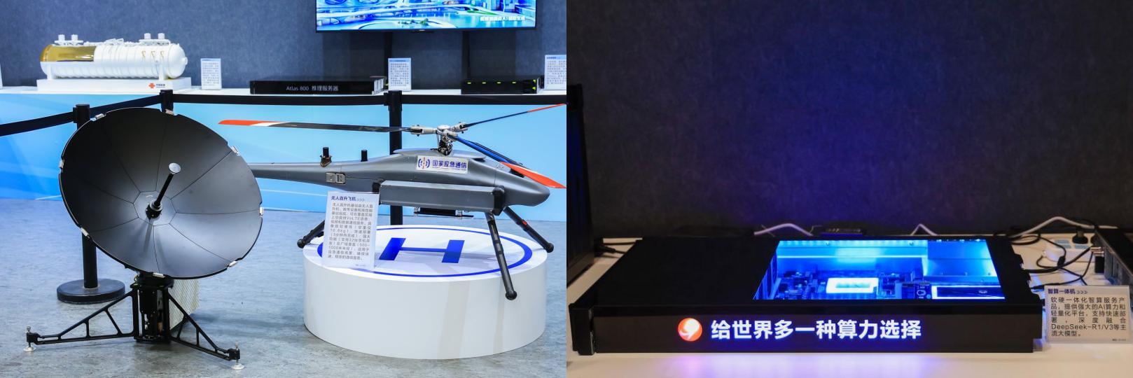 无人机、智算中心等实物或模型,更直观、更形象地展现通信技术应用。